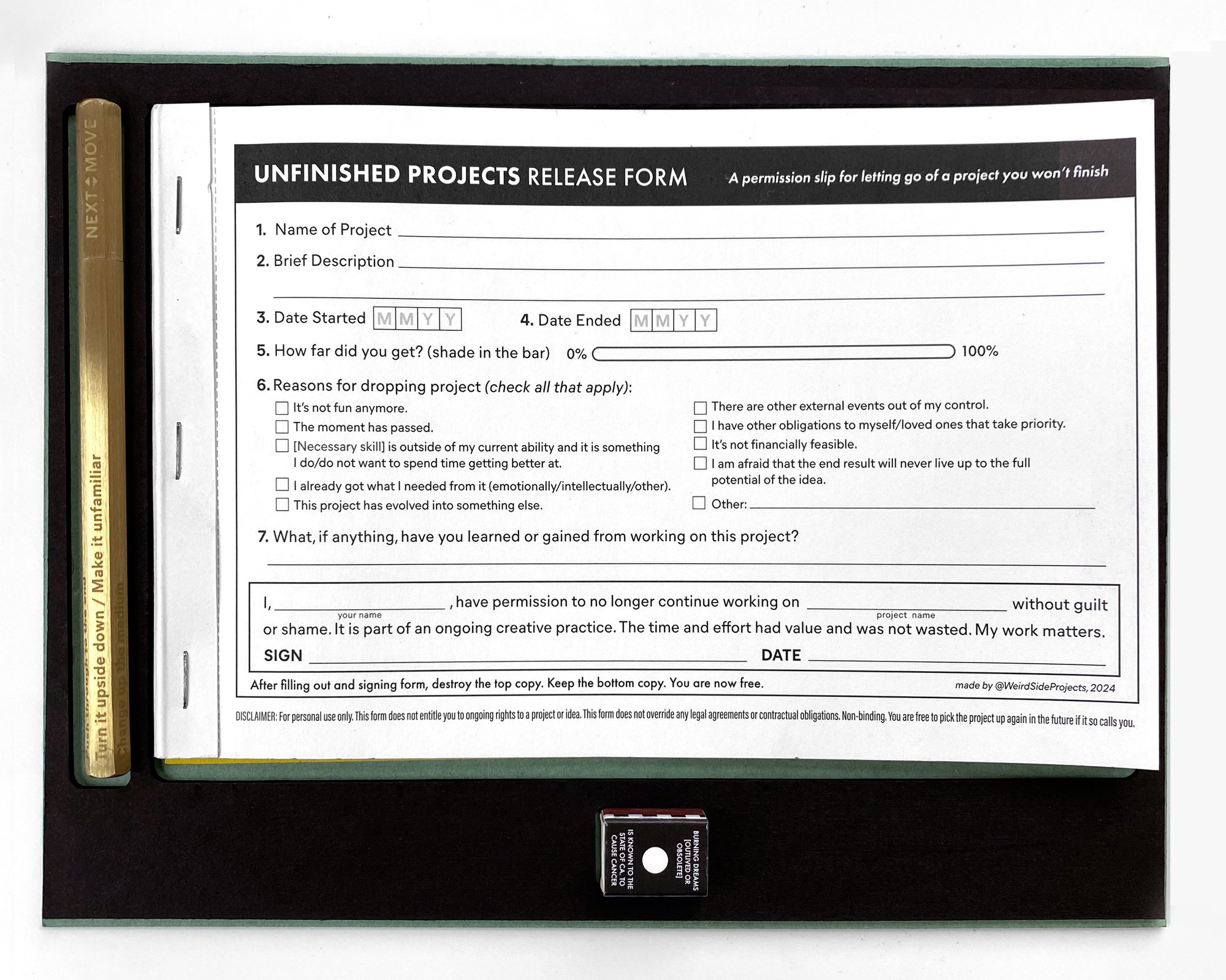 The Unfinished Projects Release Forms refills are also available for purchase under Toolkits & Forms